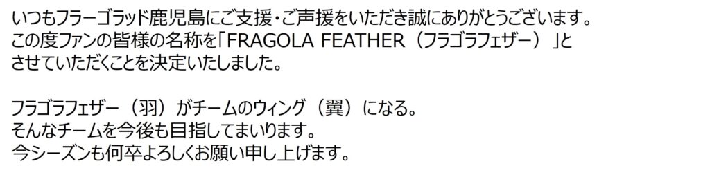 ファン名称「FRAGOLA FEATHER」