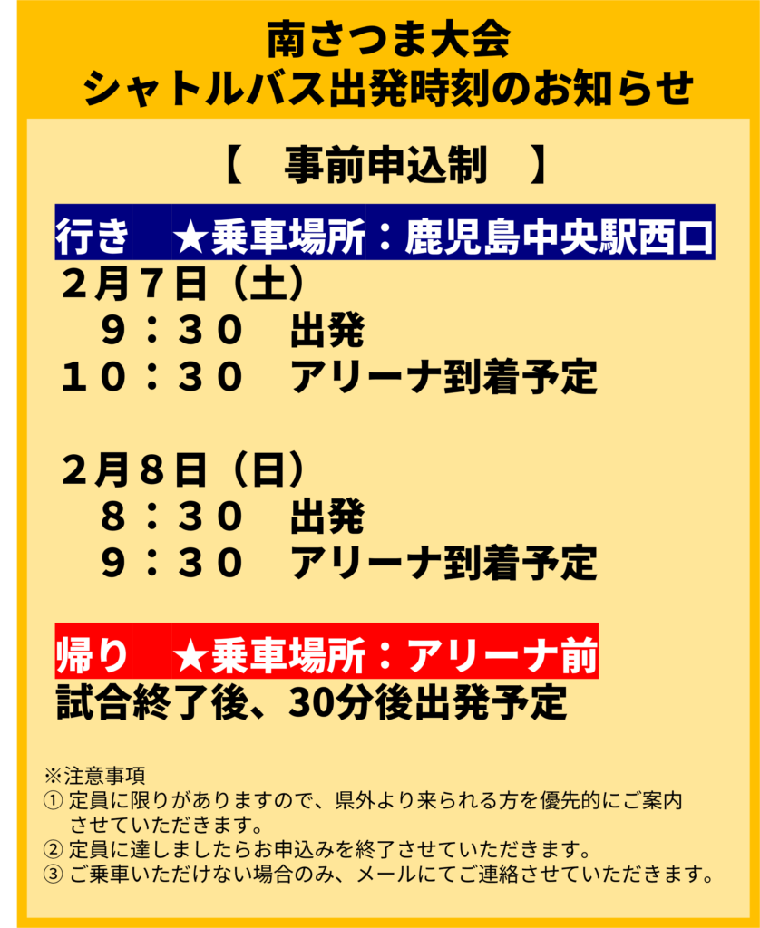 2月7日・8日 南さつま大会 大会情報