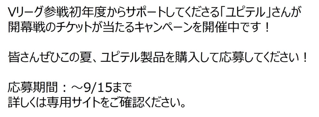 2025-26 V.LEAGUE ホーム開幕戦ペア観戦チケットプレゼント